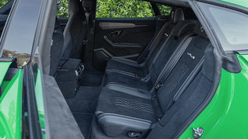 우루스의 실내 디자인은 람보르기니 특유의 고전적이면서도 드라마틱한 스타일을 연출하고 있습니다. 스타트 버튼은 눈에 띄는 빨간색 플립 커버 아래에 숨겨져 있으며, 제트 전투기에서 영감을 받은 디자인의 시프터는 스로틀 레버와 같은 모습을 하고 있습니다. 그 옆에는 차량의 드라이브 모드를 조절하거나 성능 설정을 맞출 수 있는 레버가 위치해 있습니다. 인테리어 내부에는 고급스러운 인조 스웨이드와 탄소 섬유 트림이 풍성하게 사용되었고, 최신의 인포테인먼트 시스템과 다양한 설정이 가능한 계기판은 아우디에서 가져온 기술입니다. 뒷좌석은 넓은 공간을 자랑하며, 좌석 배치에 따라 2명 또는 3명이 편안하게 앉을 수 있습니다. 도어 포켓과 센터 스택 뒤의 저장 공간은 실용성을 더해줍니다. 우루스의 트렁크 공간은 약 623리터로 넓은 편이며, 후방 버킷 시트 옵션을 추가할 경우 약 57리터 정도 감소하여 566리터가 됩니다