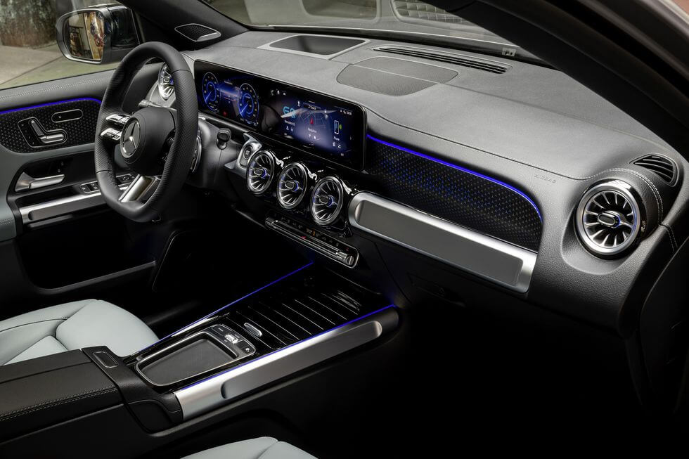메르세데스-벤츠의 첨단 MBUX 인포테인먼트 시스템이 EQB 내부의 중심 기술로 자리 잡고 있습니다. 이 시스템은 오디오 재생, 내비게이션, 그리고 다양한 차량 기능 조정을 위한 터치스크린, 음성 명령 기능, 스티어링 휠에 내장된 컨트롤 등 다양한 인터페이스 옵션을 제공합니다. 사용자 인터페이스는 대체로 직관적이지만, 때때로 사용상의 불편함을 초래하기도 합니다. 특히 "메르세데스"라는 단어를 말할 때마다 활성화되는 음성 어시스턴트의 과도한 반응성이 사용자에게 불편함을 줄 수 있습니다. 내비게이션 시스템은 특히 전기차 운전자에게 유용한 기능을 제공하는데, 전기차 충전소 위치를 쉽게 찾을 수 있도록 돕는 기능이 포함되어 있어 운전자가 목적지까지의 경로를 효율적으로 계획할 수 있도록 지원합니다.