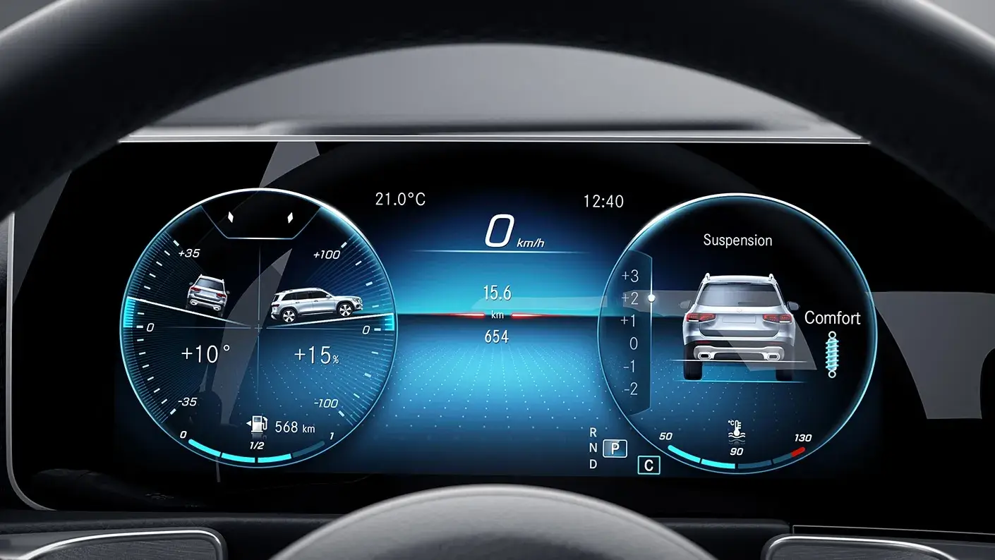 메르세데스-벤츠 GLB 클래스는 기본 인테리어 장비가 다소 제한적이지만, 인포테인먼트 및 최신 기술 사양을 통해 이를 상당 부분 보완합니다. 이 차량은 주행 정보와 엔터테인먼트를 위한 두 개의 12.3인치 디스플레이를 갖추고 있으며, 모든 GLB250 모델에 기본으로 탑재되어 있습니다. 이러한 대형 스크린은 직관적인 사용자 인터페이스와 선명한 그래픽을 제공하여 운전자에게 편리한 정보 접근성을 보장합니다. 또한, GLB 클래스는 무선 애플 카플레이와 안드로이드 오토를 지원하여, 사용자의 스마트폰을 차량의 시스템과 쉽게 통합할 수 있습니다. 이를 통해 운전자는 핸즈프리 통화, 음악 스트리밍, 내비게이션과 같은 다양한 스마트폰 기능을 차량의 디스플레이를 통해 손쉽게 사용할 수 있습니다. 더불어, 4개의 USB-C 포트와 블루투스 연결성은 승객들이 자신의 기기를 차량에 연결하고 충전할 수 있는 편의를 제공합니다. 이 모든 기능들은 GLB250의 현대적인 인테리어를 기술 중심의 경험으로 변모시키며, 사용자에게 다양한 멀티미디어 옵션을 제공합니다.
