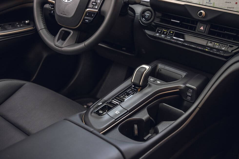 크라운의 실내는 적절하게 고급스러워 보입니다. 특히 리미티드 또는 플래티넘 모델을 구입하는 경우, 기존 아발론 세단을 트레이드하는 운전자라면 업그레이드된 실내를 경험하게 될 것입니다. 운전 포지션은 전통적인 세단 높이에서 소형 SUV와 비슷한 수준으로 높아져, 전통적인 방식을 고수하는 풀사이즈 세단 대신 크라운이 매력적인 대안이 될 수 있습니다. 모든 모델에는 열선 기능이 있는 앞 좌석 8방향 전동 조절 시트, 듀얼존 자동 온도 조절 장치, 앰비언트 실내조명이 기본으로 제공됩니다. 리미티드 및 플래티넘 트림에는 파노라마 선루프, 가죽 내장재, 앞 좌석 통풍 시트가 추가됩니다.