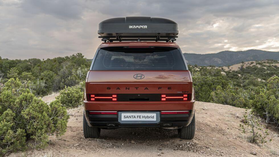 2024 싼타페의 박스형 디자인은 텐트나 카고 박스 등 루프탑에 장착할 수 있도록 맞춤 제작된 것처럼 보입니다. 현대자동차는 싼타페 위에 장착된 물건에 쉽게 손을 뻗을 수 있도록 C필러에 외부 손잡이를 장착하여 SUV에 장착했습니다. 이 추가 레버리지 덕분에 바퀴 위로 다리를 들어 올리고 타이어 상단에 발을 딛고 지붕에 있는 물건을 잡는 것이 그 어느 때보다 쉬워질 것입니다.