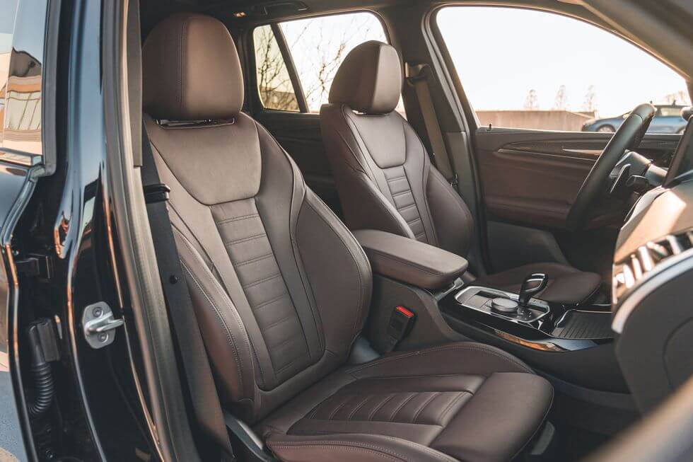 BMW X3의 스타일리시한 인테리어는 추가적인 옵션을 선택하기 전에도 이미 잘 갖추어져 있습니다. 조절 가능한 사이드 볼스터를 포함한 10방향 전동 조절식 앞 좌석은 사용자가 편안한 자세를 쉽게 찾을 수 있도록 해줍니다. 뒷좌석 승객들은 리클라이닝이 가능한 시트백을 사용할 수 있으며, 모든 좌석의 쿠션은 장거리 여행에서도 충분한 편안함을 제공합니다. X3의 나머지 실내 공간은 세심하게 선택된 소재와 단단한 패널 간격으로 고급스럽고 실용적으로 구성되어 있습니다. 시승 차량에 장착된 유광 우드 그레인 트림은 플라스틱이지만 실제 목재처럼 보이고 느껴졌으며, 스티치 처리된 인조 가죽 대시보드와 도어 커버는 니켈 마감의 금속 트림과 함께 차량의 고급스러움을 더해주었습니다.