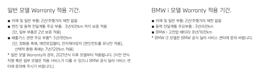 이러한 워런티 및 유지보수 프로그램을 통해 BMW는 차량 소유의 가치를 높이며, 고객이 차량을 안심하고 운행할 수 있도록 지원합니다.