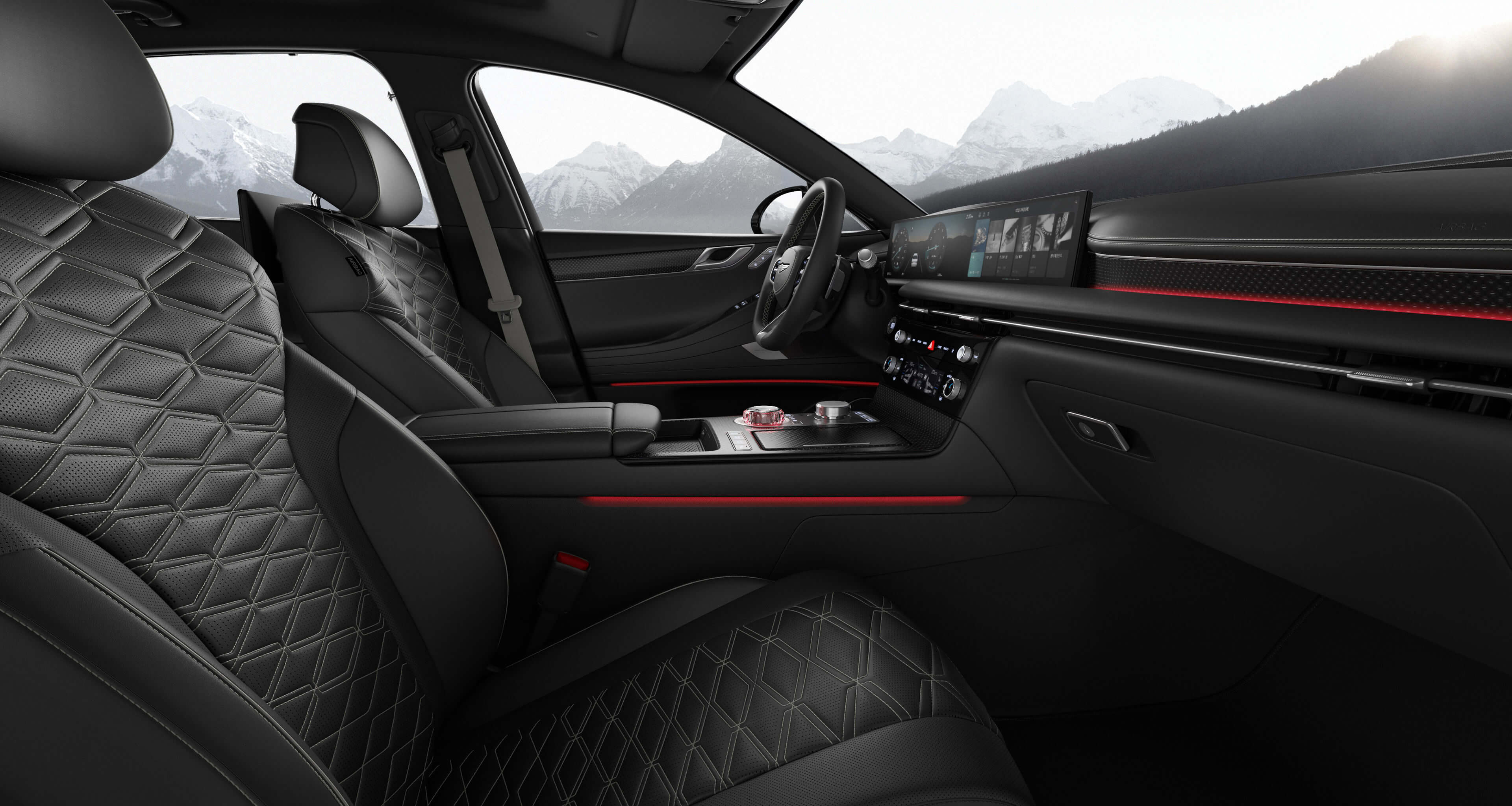 2025년형 제네시스 G80 세단은 디자인과 기술 면에서 현저한 진화를 보여줍니다. 이 차량의 외관은 새로운 그릴, 혁신적으로 디자인된 헤드램프, 업데이트된 전면 및 후면 범퍼, 그리고 세련된 새 휠 디자인을 통해 한층 더 날렵하고 현대적인 모습으로 재탄생하였습니다. 특히 스포츠 트림은 더 크고 독특한 공기 흡입구가 특징인 전면 범퍼와 차별화된 질감의 그릴로 강인한 인상을 줍니다. 내부적으로는 G80의 대시보드가 전면적으로 재구성되었습니다. 이는 새롭게 도입된 27.0인치 OLED 디스플레이 화면의 크기와 형태에 맞춰진 변경으로, 대시보드 전체에 걸쳐 확장된 이 디스플레이는 눈부신 시각적 경험을 제공합니다. 또한, 재구성 가능한 게이지 디스플레이와 인포테인먼트 인터페이스는 모두 선명하고 직관적으로 렌더링 되어 사용자 경험을 향상합니다. 새로운 터치식 온도 조절 장치는 센터 콘솔 하단에 통합되어 있어 깔끔하고 세련된 느낌을 줍니다. 또한, 업데이트된 트림 옵션과 새로운 디자인의 회전식 시프트 노브는 G80의 고급스러움을 더욱 강조하며, 전체적으로 이 차량은 기술과 디자인의 조화를 통해 럭셔리 세단의 새로운 기준을 제시합니다.