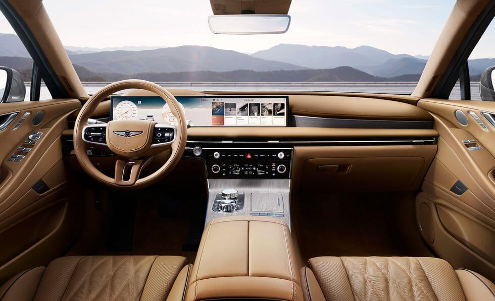 G80는 고급 자동차 시장에 걸맞은 세련된 인테리어를 선보입니다. 내부는 유려한 유선형 대시보드와 부드러운 촉감의 표면, 그리고 고급스러운 소재들이 조화롭게 어우러진 우아한 디자인을 특징으로 합니다. 스티어링 휠의 디자인이 다소 이질적으로 느껴질 수 있으며, 회전식 변속 노브의 배치가 다른 원형 컨트롤 근처에 위치할 경우 직관성이 다소 떨어질 수 있다는 점은 주목할 만하지만, 전반적으로 G80의 인테리어는 뛰어난 품질을 자랑합니다. 이 세단은 대형 OLED 디스플레이를 통해 게이지와 인포테인먼트 정보를 선명하게 제공하며, 앰비언트 인테리어 조명과 헤드업 디스플레이 등 고급스러움을 더하는 다양한 기능들이 탑재되어 있습니다. 또한, 앞 좌석및 뒷좌석에는 열선 및 통풍 기능이 제공되어, 운전자와 탑승자 모두에게 최상의 편안함을 제공합니다. 앞 좌석은헤드룸과 레그룸이 넉넉하여 편안한 주행 환경을 조성하며, 뒷좌석은 비록 넓지는 않지만 성인 두 명이 편안하게 여행할 수 있는 충분한 공간을 제공합니다.