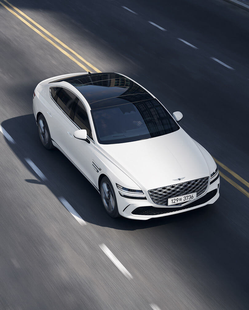2025년형 제네시스 G80 세단은 디자인과 기술 면에서 현저한 진화를 보여줍니다. 이 차량의 외관은 새로운 그릴, 혁신적으로 디자인된 헤드램프, 업데이트된 전면 및 후면 범퍼, 그리고 세련된 새 휠 디자인을 통해 한층 더 날렵하고 현대적인 모습으로 재탄생하였습니다. 특히 스포츠 트림은 더 크고 독특한 공기 흡입구가 특징인 전면 범퍼와 차별화된 질감의 그릴로 강인한 인상을 줍니다. 내부적으로는 G80의 대시보드가 전면적으로 재구성되었습니다. 이는 새롭게 도입된 27.0인치 OLED 디스플레이 화면의 크기와 형태에 맞춰진 변경으로, 대시보드 전체에 걸쳐 확장된 이 디스플레이는 눈부신 시각적 경험을 제공합니다. 또한, 재구성 가능한 게이지 디스플레이와 인포테인먼트 인터페이스는 모두 선명하고 직관적으로 렌더링 되어 사용자 경험을 향상합니다. 새로운 터치식 온도 조절 장치는 센터 콘솔 하단에 통합되어 있어 깔끔하고 세련된 느낌을 줍니다. 또한, 업데이트된 트림 옵션과 새로운 디자인의 회전식 시프트 노브는 G80의 고급스러움을 더욱 강조하며, 전체적으로 이 차량은 기술과 디자인의 조화를 통해 럭셔리 세단의 새로운 기준을 제시합니다.