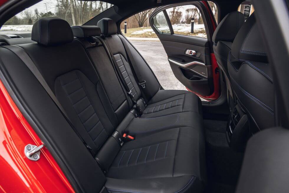 BMW 3시리즈의 실내는 현대적인 디자인, 고품질 소재, 그리고 인상적인 제작 품질로 구성되어 있습니다. 실내 공간은 저렴한 느낌이 전혀 없으며, 모든 컨트롤이 효율적으로 배치되어 사용하기 편리합니다. 기본 제공되는 스포츠 시트는 단단하면서도 편안한 지지력을 제공하고, 광범위하게 조절 가능하여 최적의 안락함을 보장합니다. 이 차량에는 선택사항으로 상세한 헤드업 디스플레이, 맞춤형 앰비언트 실내조명, 앞 좌석 및 뒷좌석의 열선 시트, 원격 시동 및 무선 충전 기능 등이 포함됩니다. 또한, 3시리즈는 대형 트렁크를 갖추고 있으며, 이는 전동식 데크 리드로 선택할 수 있습니다. 이 가솔린 세단은 17세 제곱피트(약 481리터)의 적재 공간을 제공하며, 뒷좌석을 접었을 때는 최대 6개의 기내용 여행 가방을 수납할 수 있고, 전체적으로는 최대 17개의 여행 가방을 수납할 수 있습니다. 비교적으로 메르세데스-벤츠 C300 세단은 같은 테스트에서 한 개 적은 여행 가방을 수납할 수 있었고, 알파 로메오 줄리아는 각각 5개와 15개의 여행 가방을 수납할 수 있었습니다. 330e 플러그인 하이브리드 모델은 배터리 팩으로 인해 트렁크 공간이13 큐빅피트(약리터)로 줄어들었으며, 기내 반입 용량에 대한 테스트는 실시하지 않았습니다.