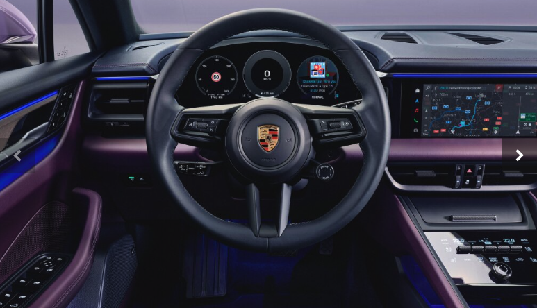 2025 마칸 EV의 실내는 미래지향적인 디지털 기술과 포르쉐 전통의 럭셔리 감성이 조화를 이룹니다. 12.6인치 곡면 디지털 클러스터, 10.9인치 중앙 터치스크린, 선택 가능한 동승자용 디스플레이까지 총 3개의 스크린이 배치되어 운전자를 중심으로 구성되어 있습니다.